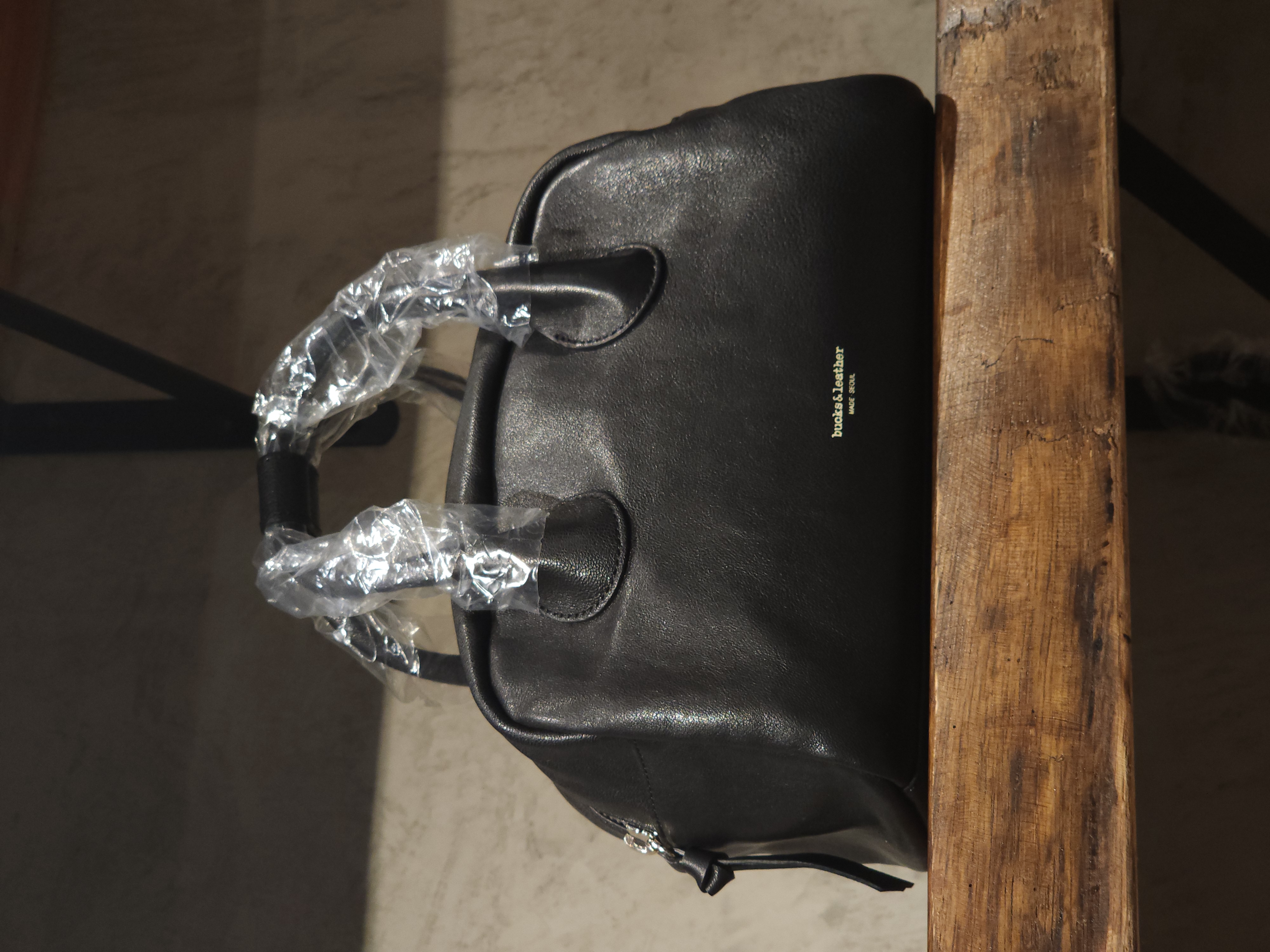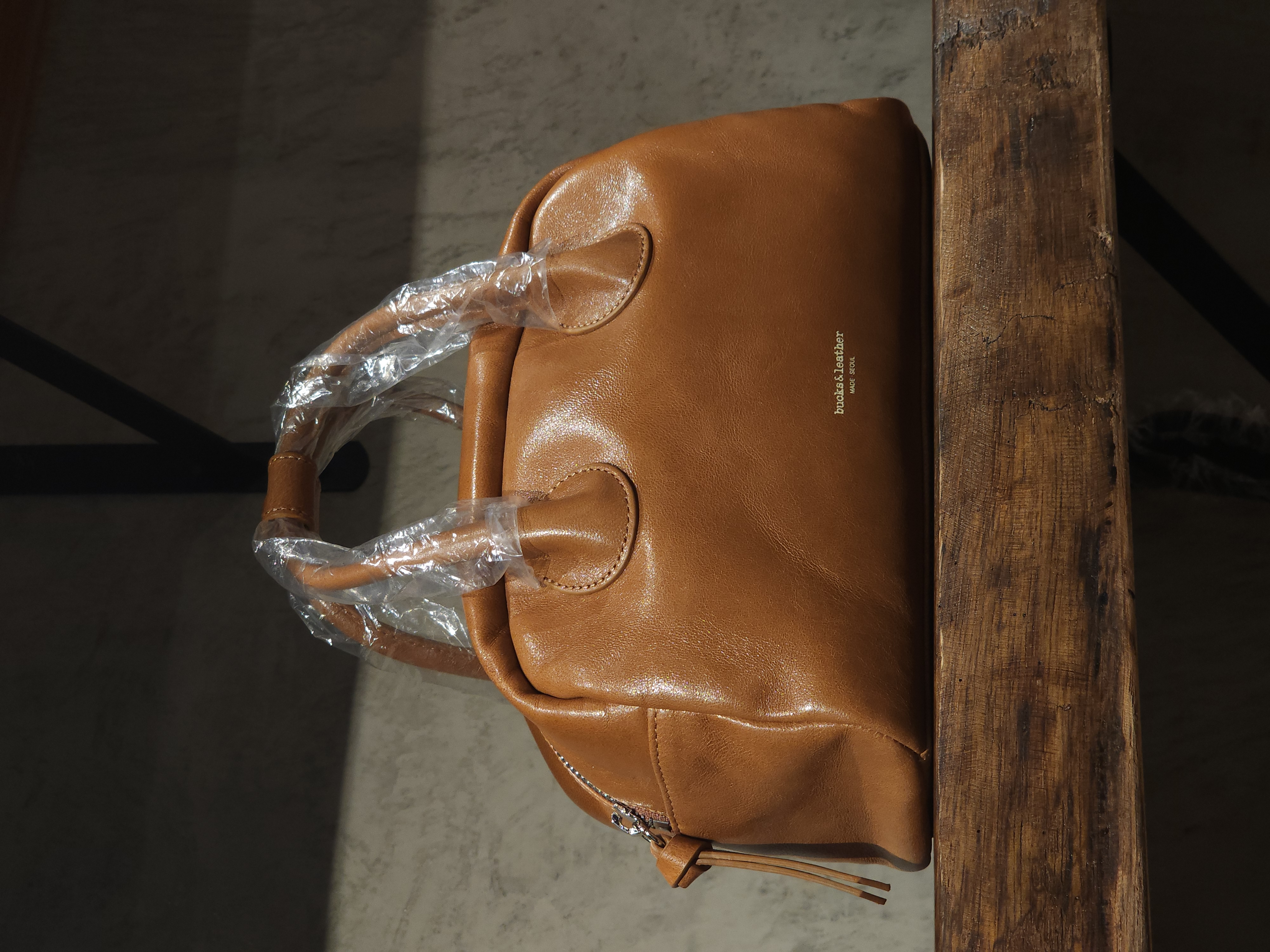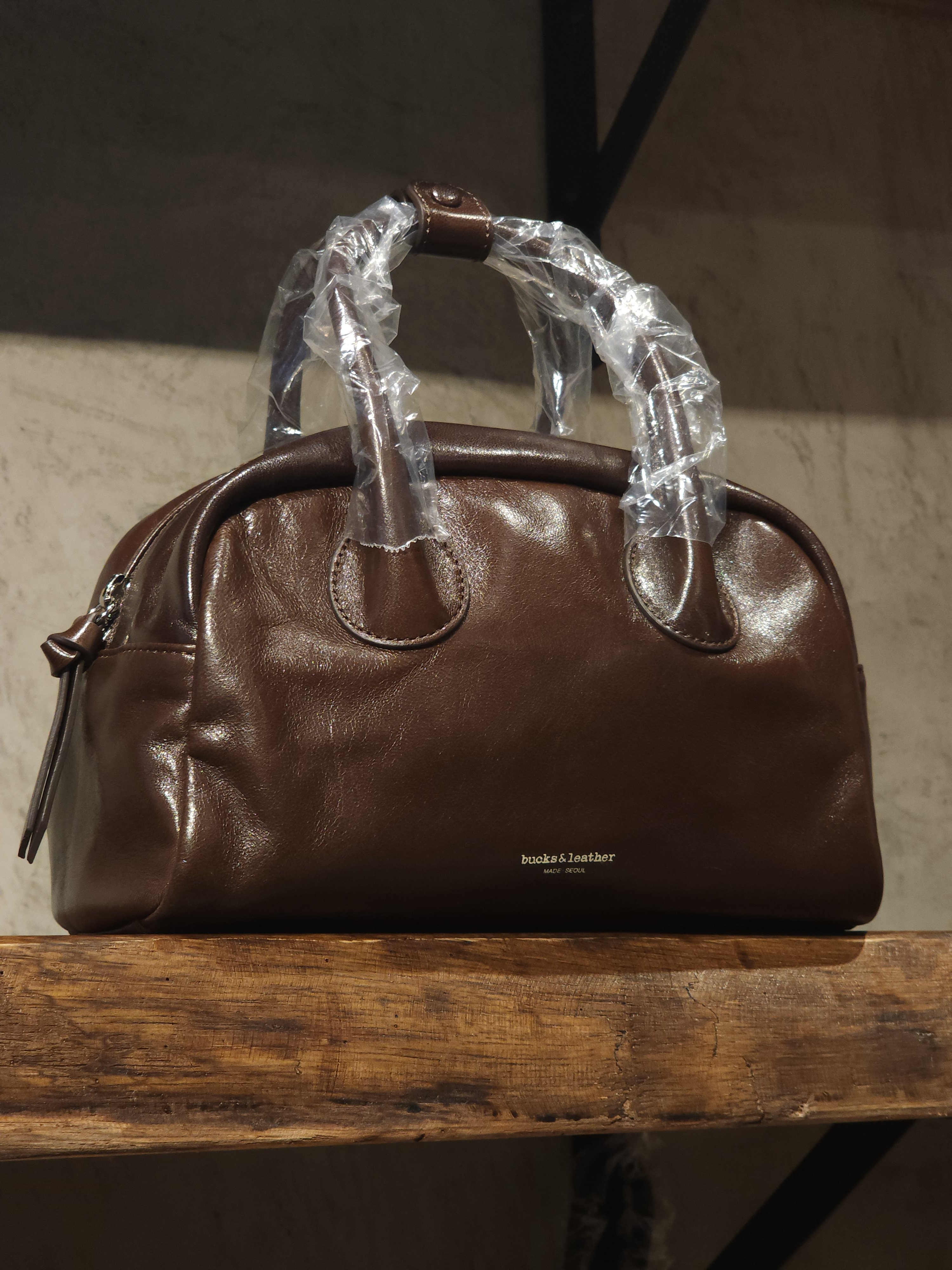 Bucks & Leather Crafted from supple genuine goat leather, this elegantly structured handbag embodies refined craftsmanship and minimalist sophistication. Expertly made in Korea, it combines a soft leather texture with double top handles and a sleek zip closure, offering a perfect balance of luxury and functionality. Thoughtfully designed, the D-rings are discreetly concealed at the handle seams instead of the sides—maintaining a clean and minimalist appearance when the shoulder strap is not in use. This subtle detail allows the bag to transition effortlessly between handheld and crossbody styles. The interior features a simple yet functional layout, spacious enough to hold daily essentials such as a phone, cosmetics, and other personal items. A fabric-lined zip pocket provides secure storage for smaller valuables. Specifications: • Height (including handle): 24.5 cm ± • Body height: 16 cm ± • Width: 24.5 cm ± • Depth: 13.5 cm ± • Total strap length (non-adjustable): 108.5 cm ± Note: Each piece is measured manually; slight variations may occur.